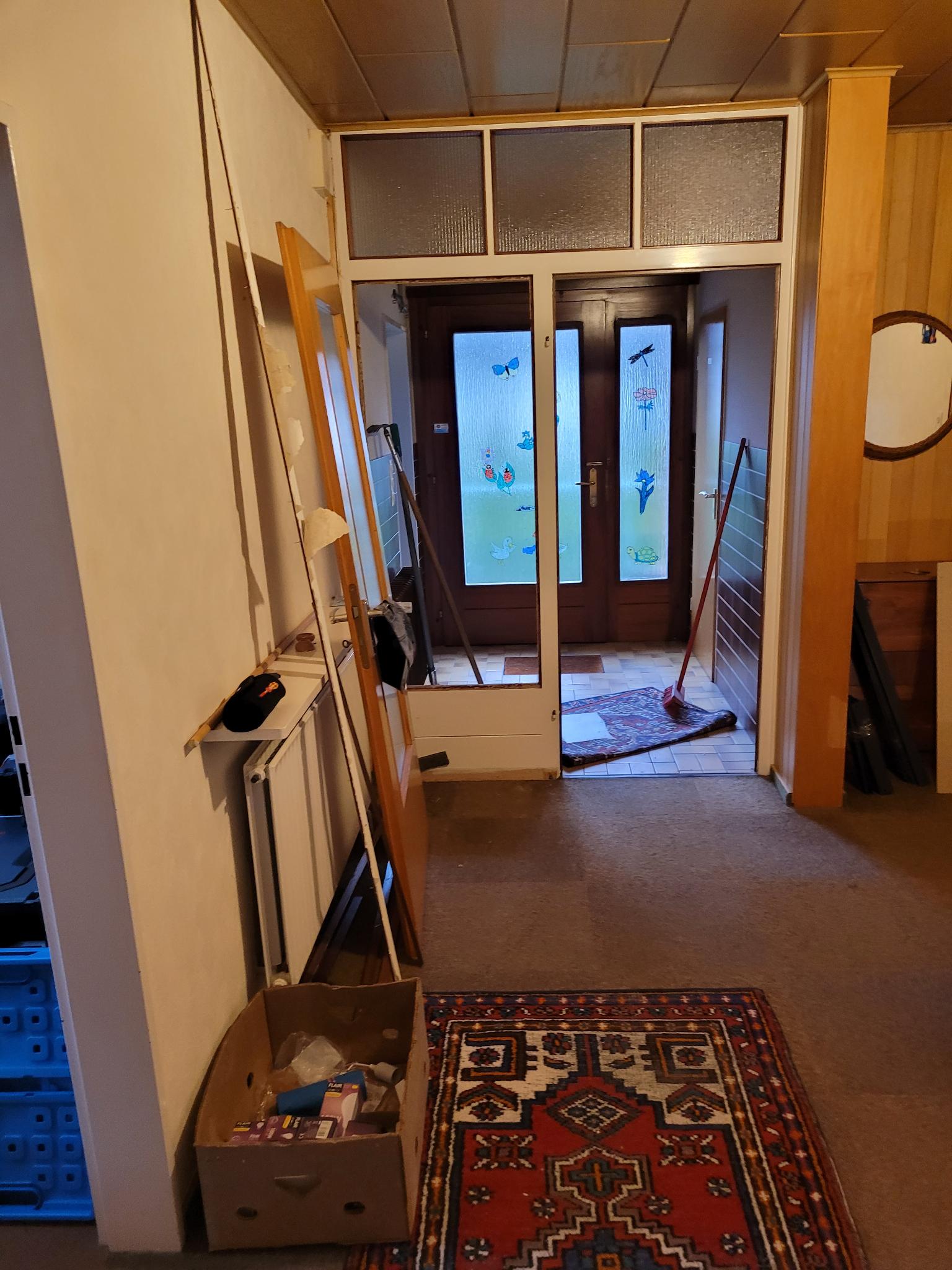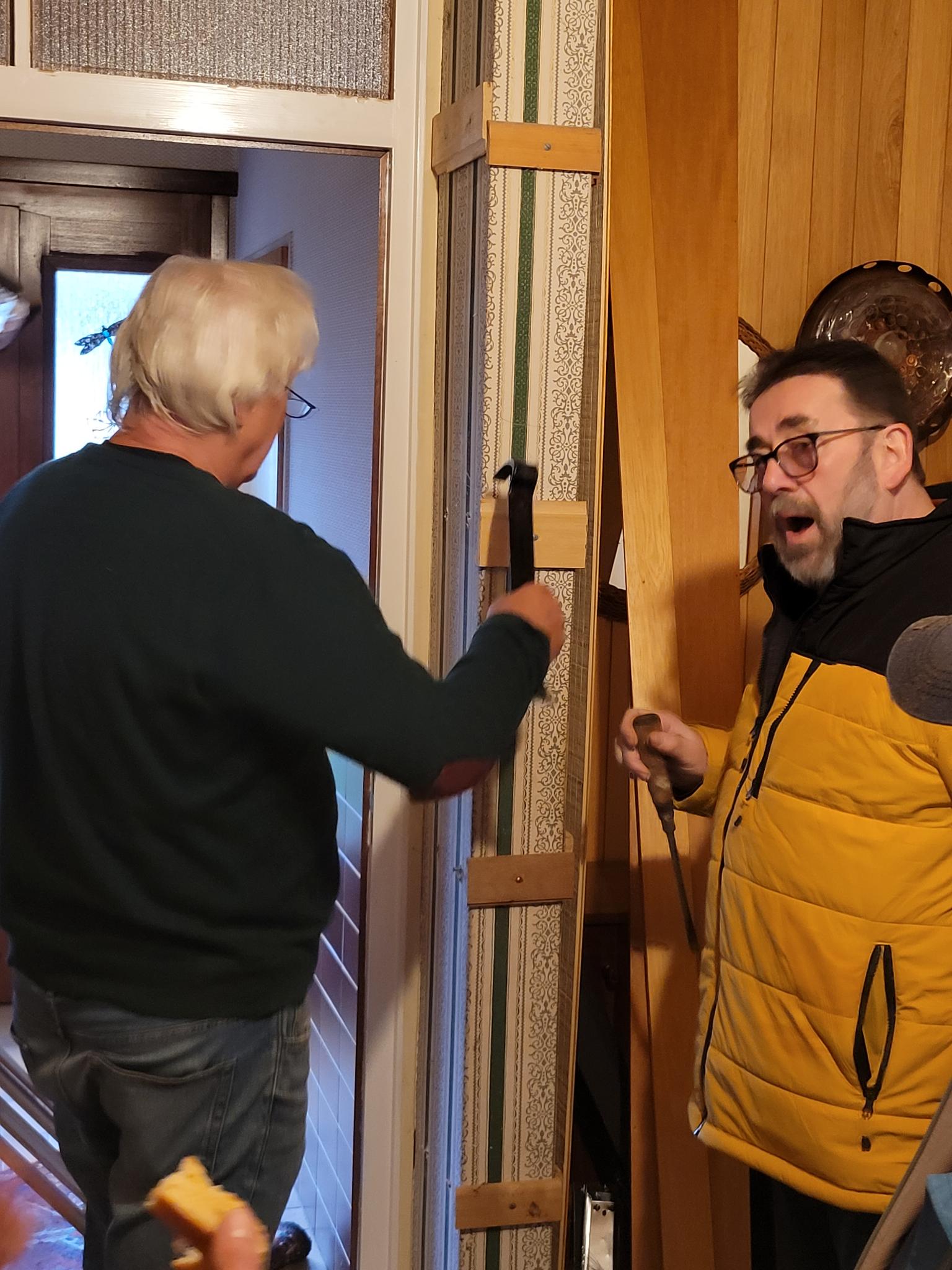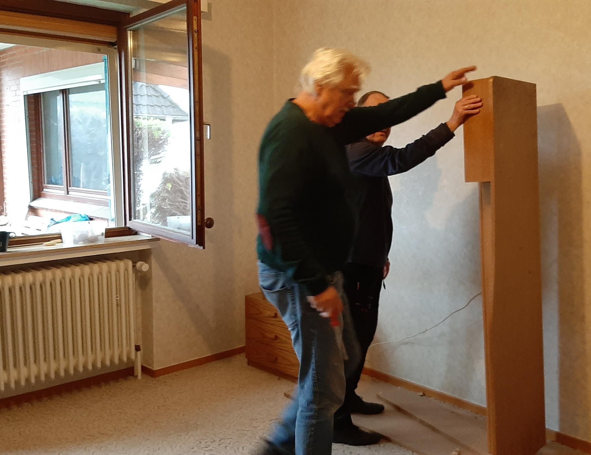 Doch nicht nur draußen wurde kräftig gearbeitet: Im Inneren des Hauses nahm sich ein Team der zurückgelassenen Möbel an und zerlegte diese fachgerecht für die Sperrmüllabholung. Außerdem wurde mit der Demontage des Windfangs begonnen.
