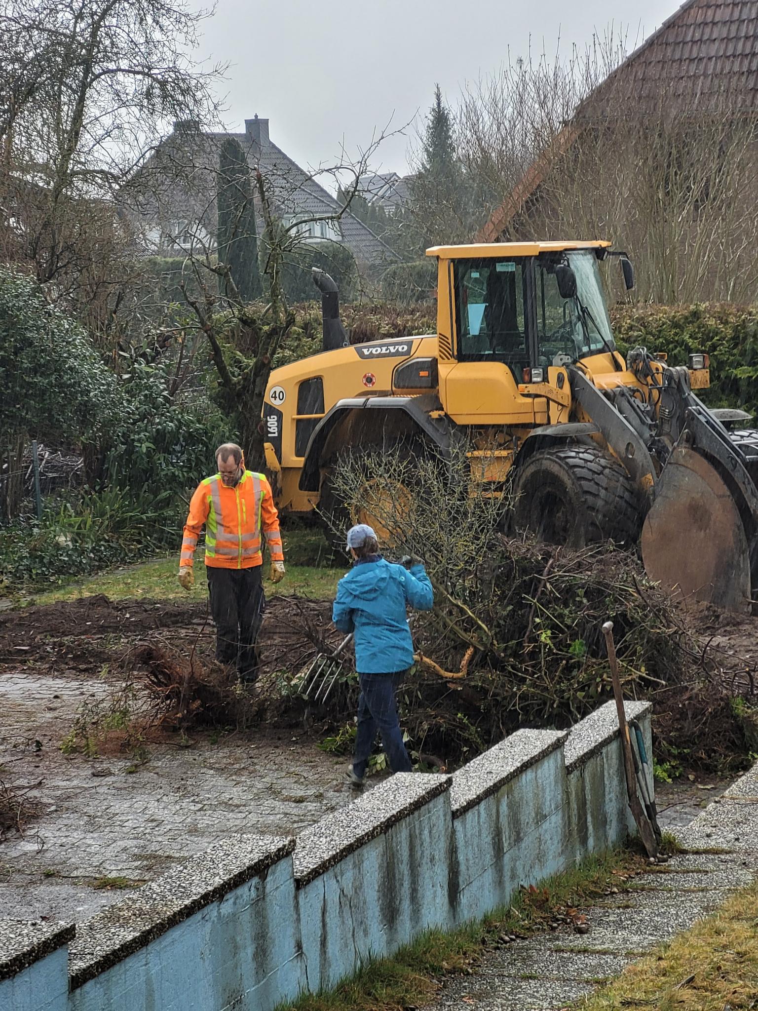 Ein ganz herzliches Dankeschön geht an unseren engagierten Nachbarn mit seinem „Arbeitstier“ sowie an alle weiteren Helfer*innen, die uns — teilweise auch ganz spontan — unterstützt haben.